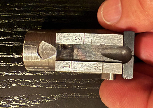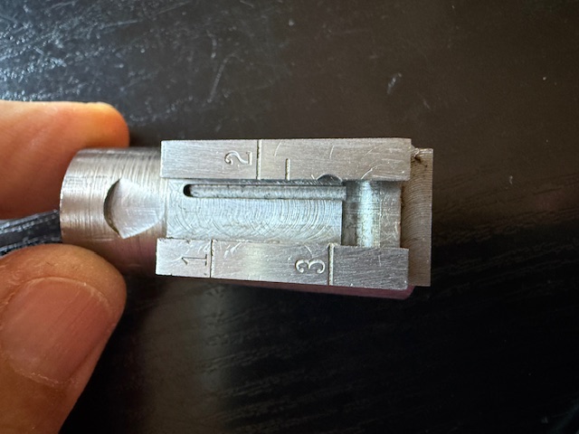 A John Martz precision-made reproduction of the 1902 Luger Carbine rear sight assembly.